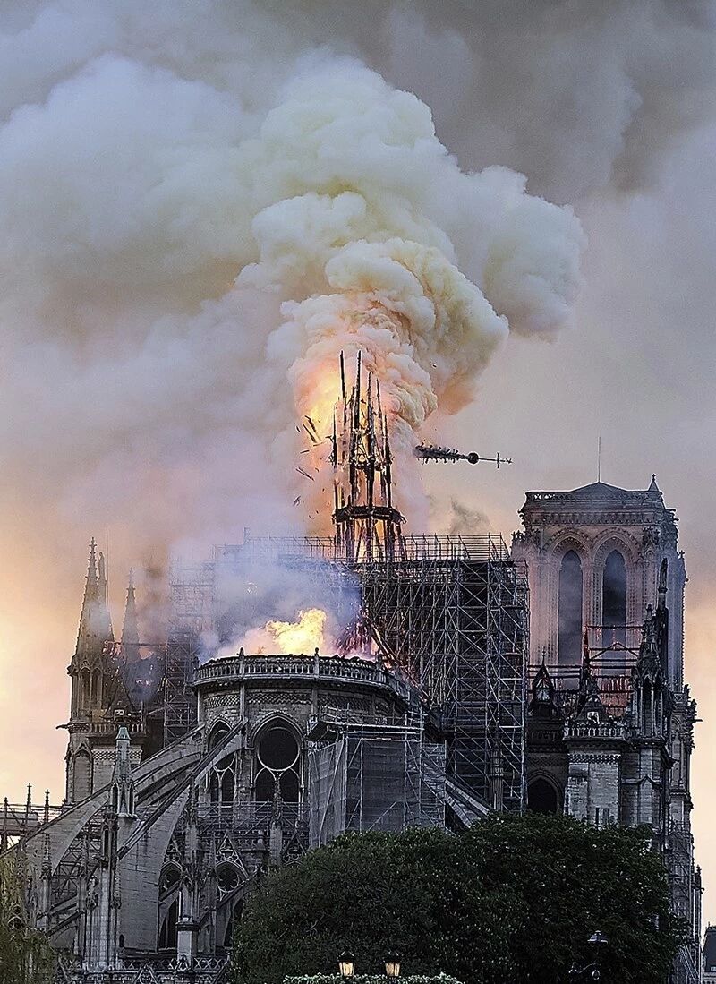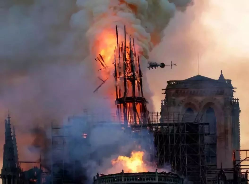 当地时间 2019 年 4 月 15 日 18 时 50 分,巴黎圣母院发生重大火灾,造成尖顶与建筑主体中后部倒塌,石头拱顶基本保持完整、许多文物被救出。巴黎警察局表示起火原因很有可能与现场修缮施工有关。