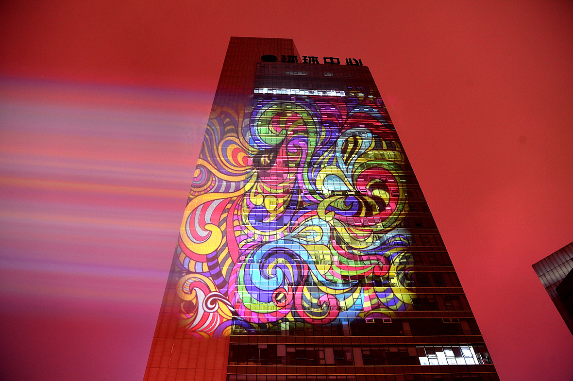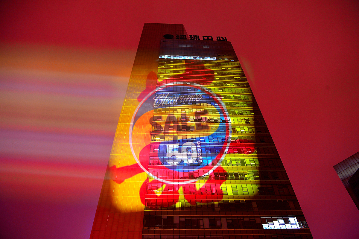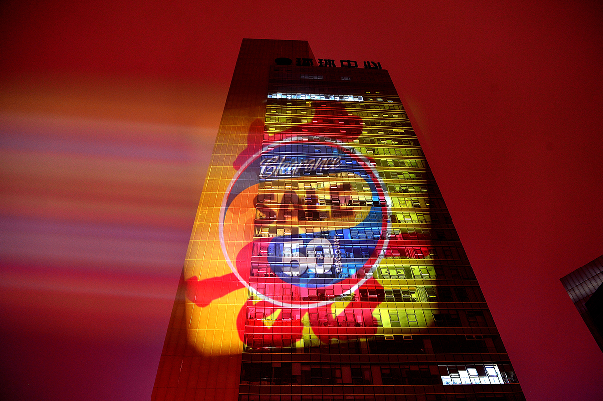 2025年国庆前,石屏县豆腐博物馆立面投影亮化,建筑宽65m,高约35m,设计 使用三台都市巨影LED光源JY-DS3500巨幕投影机。