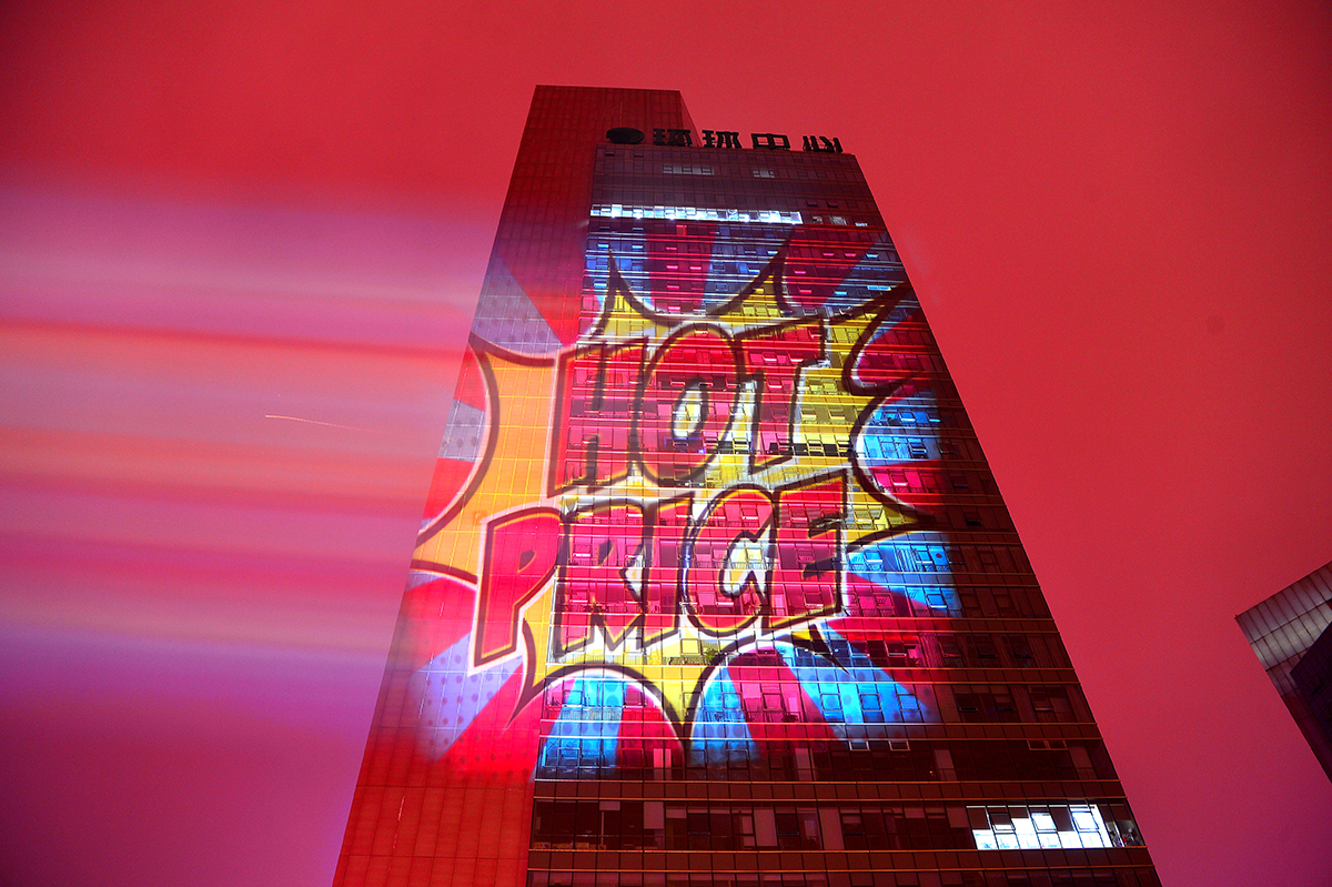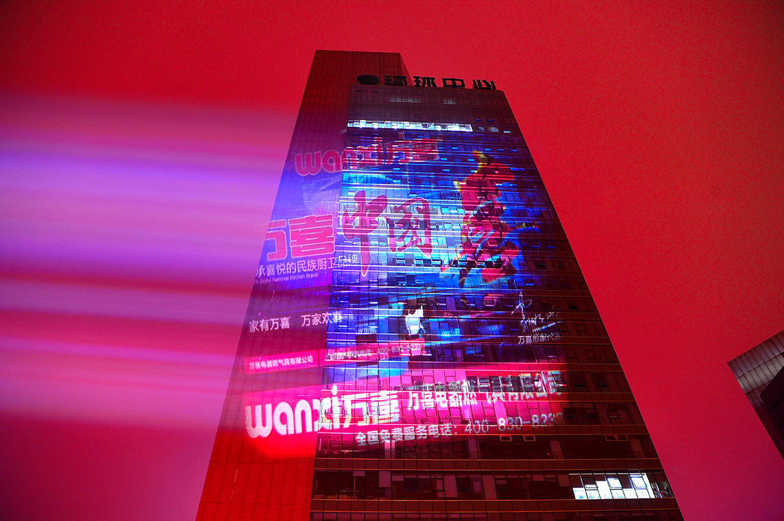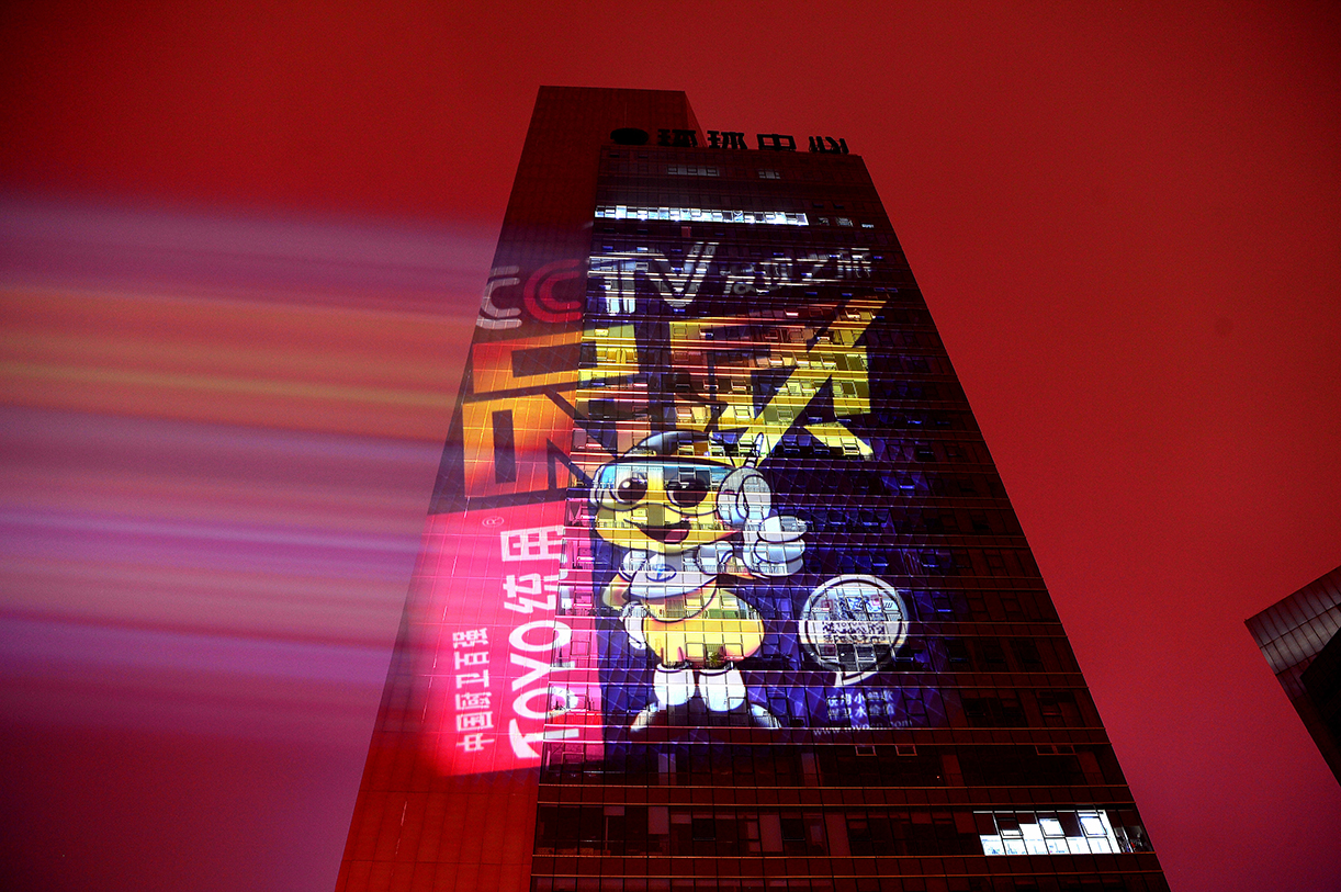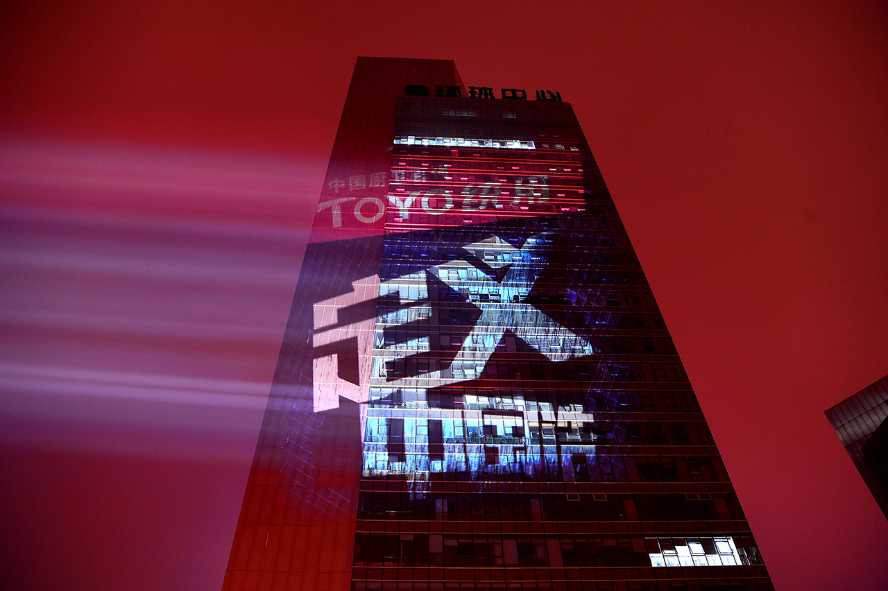 2025年国庆前,石屏县豆腐博物馆立面投影亮化,建筑宽65m,高约35m,设计 使用三台都市巨影LED光源JY-DS3500巨幕投影机。