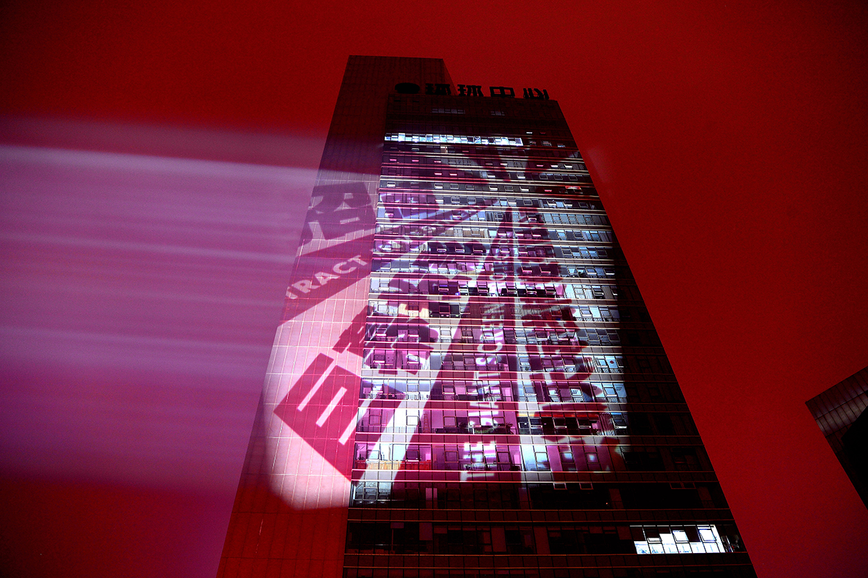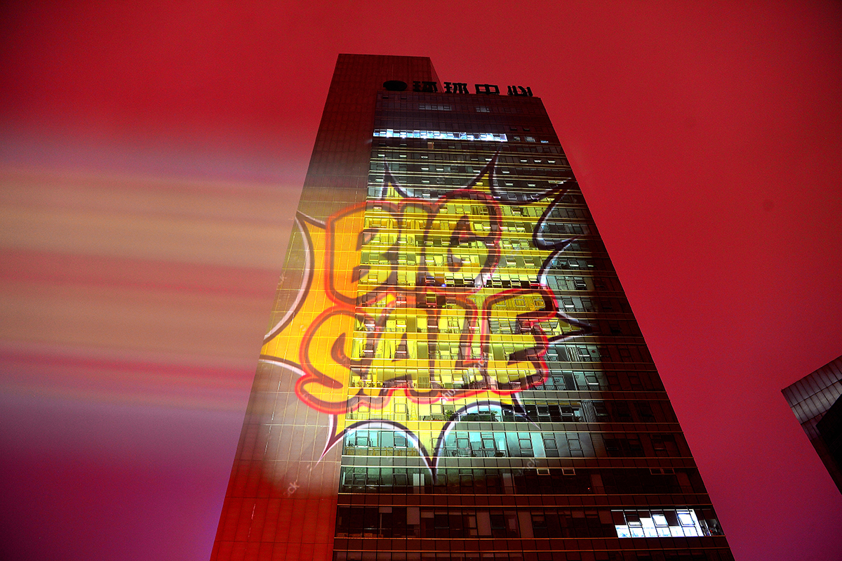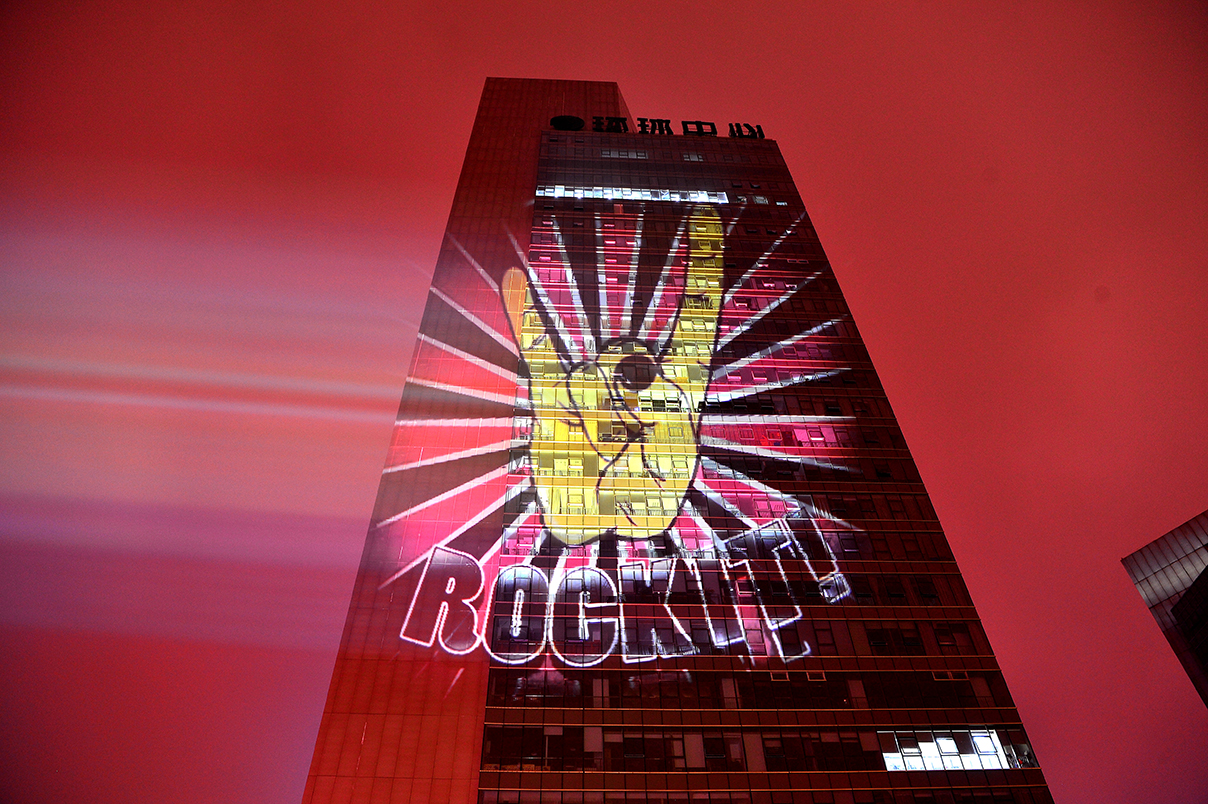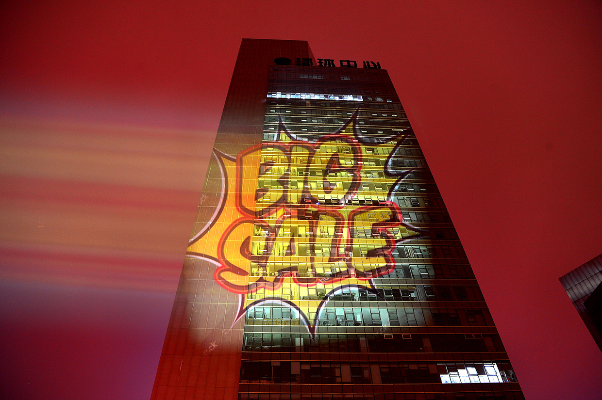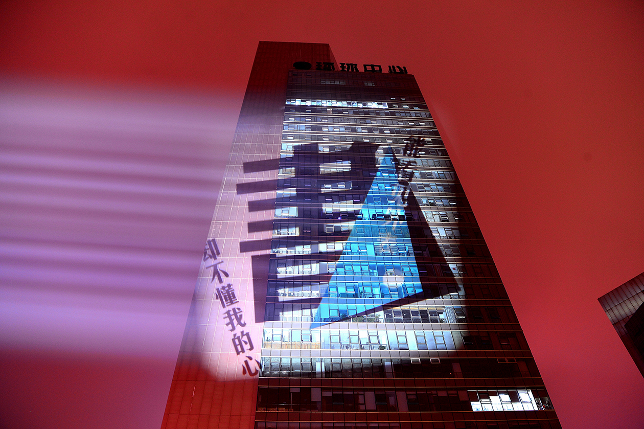 河坝旁山体亮化投影,投影距离90米,投影面积约25*25m