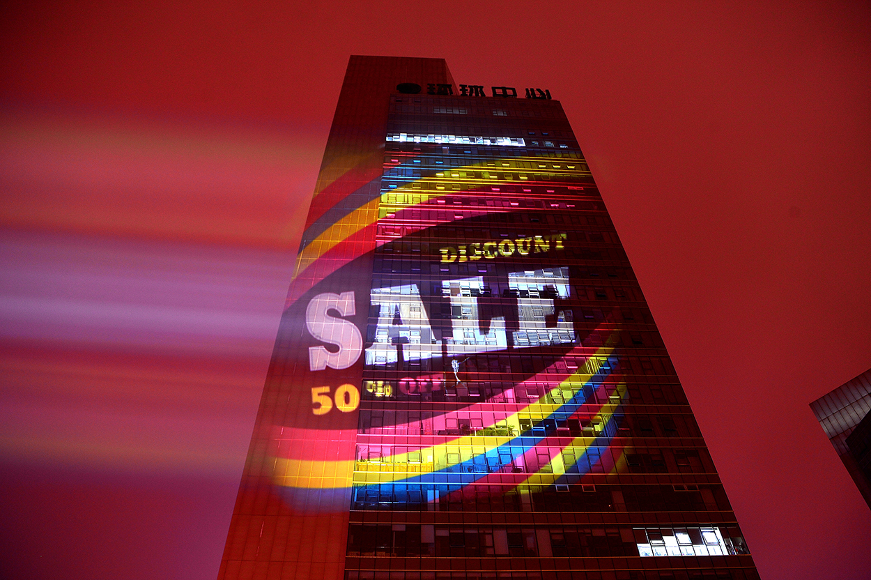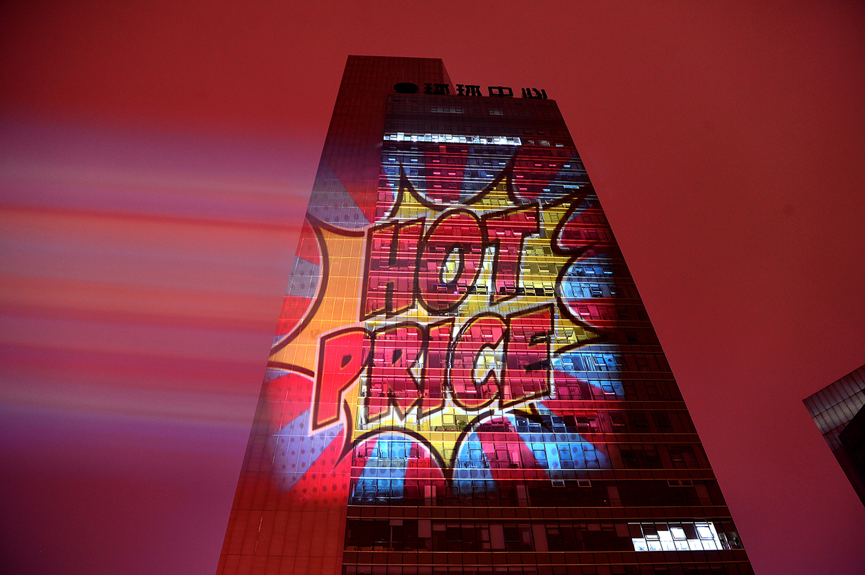 玻璃幕墙不建议投影,光大部分透过玻璃照射到房间内,我们看到的漫反射光少,视觉亮度低。投影玻璃幕墙,建议表面贴膜处理,贴与玻璃同色单孔透,或投影膜,这样会增加成本,所以不建议投影玻璃幕墙
